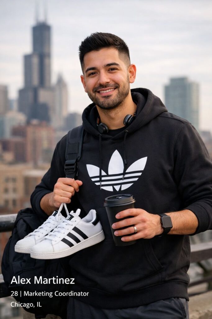 Alex Martinez is a 28-year-old marketing coordinator who lives in an urban area of Chicago, Illinois. Alex is a college graduate, earns $65,000 annually, and lives with their partner.
