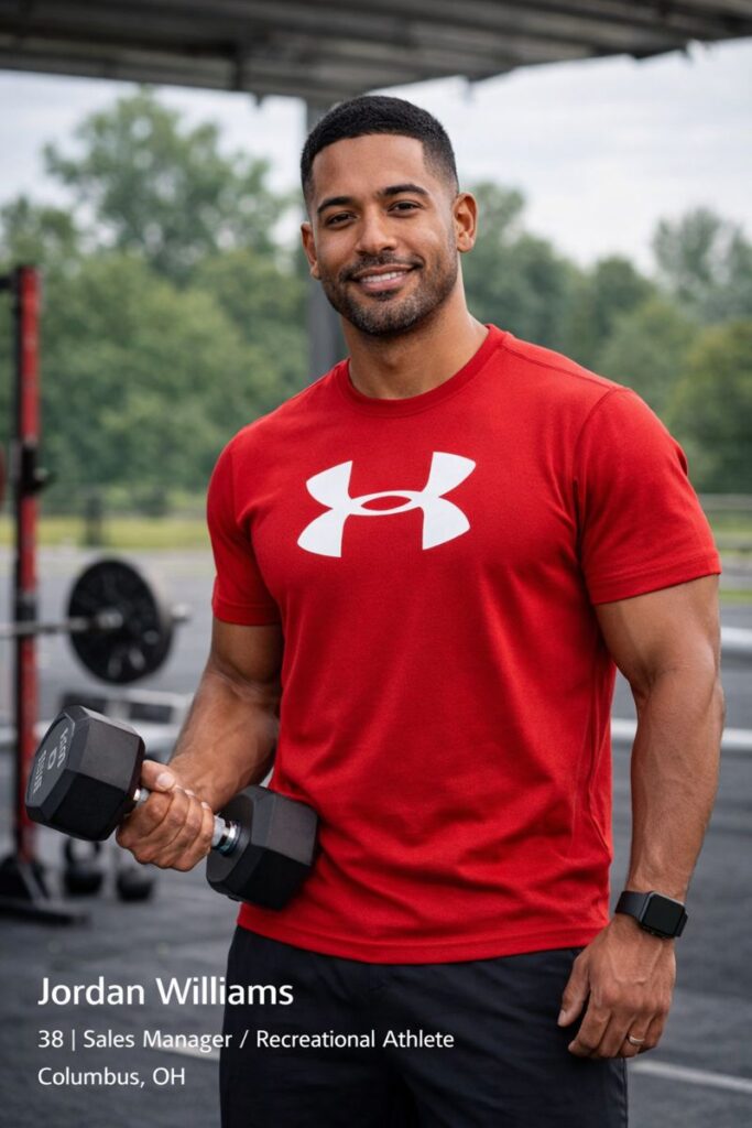 Jordan Williams is a 38-year-old sales manager and recreational athlete living in suburban Columbus, Ohio. He’s a college graduate, earns $85,000 per year, and lives with his spouse and two kids.